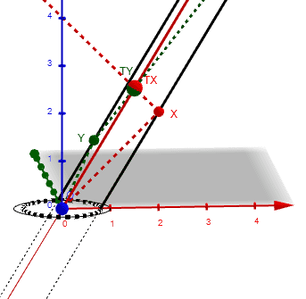So if I'm understanding your attached images correctly, the first image is what they expected, but instead they got the second image. After some zooming closer into the image's details, yeah it's apparent that the light would travel a longer distance in the first image, and that the red TX dot has moved down to overlap the green TY dot in the second image. (I'm assuming the light is traveling from bottom left to top right)