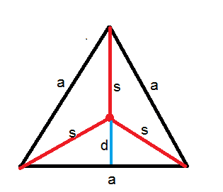 and now taking half of that I have the value of the distance from a point directly in the middle of the triangle, to the middle of one side.