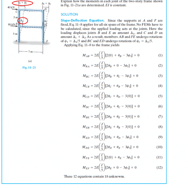 The discussion revolves around the displacement of a frame under the influence of two horizontal loads, specifically addressing why the author uses the notation Δ1 + Δ2 for the displacement at point C instead of just Δ2. The subject area pertains to mechanics and structural analysis.