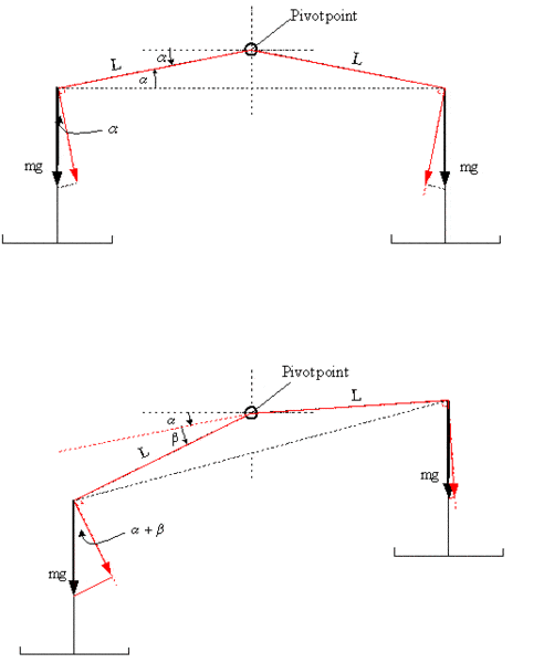 Now i am confused in third part. Since the net torque is zero, the balance should not move but that's not observed. Then why does it come to the horizontal position?