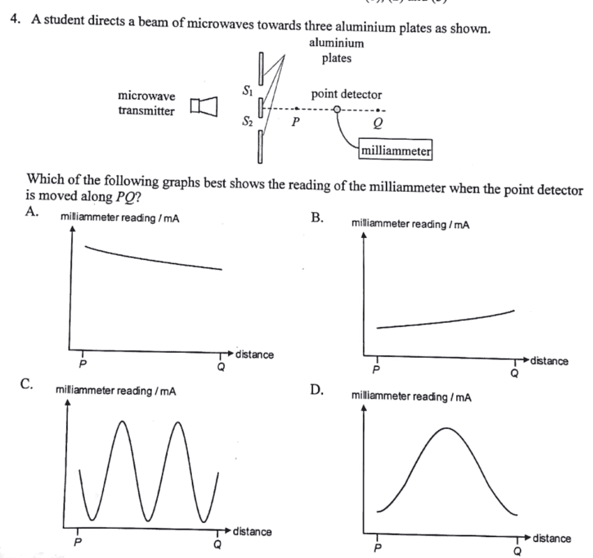The discussion revolves around the phenomenon of intensity variation in a wave interference pattern as a detector is moved away from slits, likely in the context of wave optics. Participants are exploring the implications of constructive interference and the relationship between path lengths and intensity measurements.