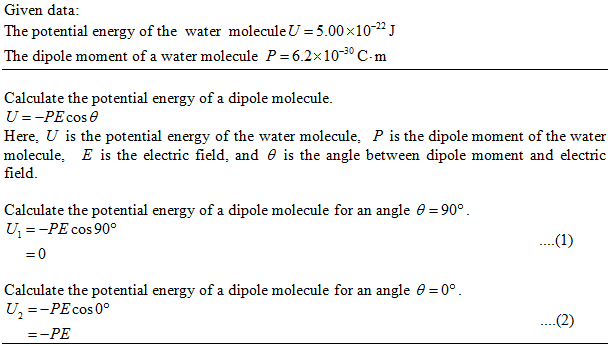 The discussion revolves around the calculation of potential energy for a dipole in an electric field, specifically addressing why certain calculations yield negative values. Participants explore the implications of alignment and angles between the dipole moment and the electric field.