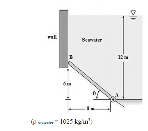 The problem involves calculating the force on a gate due to seawater pressure and a horizontal force exerted by a wall. The original poster questions the use of FH(6) instead of FH(10) in the calculations provided in a sample answer.
