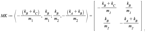 \frac{k_{B}}{m_{2}} & -\frac{k_{A}+k_{B}}{m_{2}}