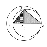 In this diagram, triangleXYZ is inscribed into the circles. O is the center of the larger circle. OZ=x, altitude XO=x-5, and OY=x-9. angleXOZ and angleXOY are both right angles. Using the two similar right triangles OYX, and OXZ, this proportion can be written: OY/OX=OX/OZ