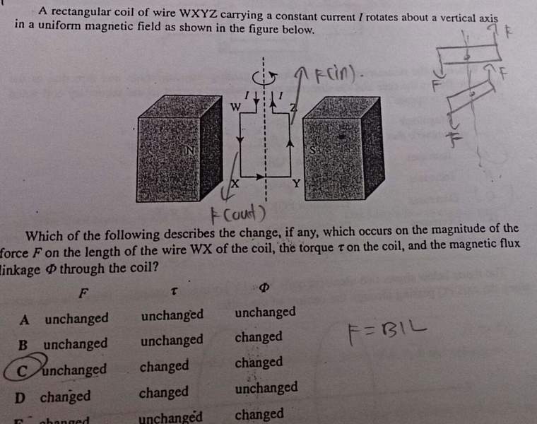 The discussion revolves around the concept of torque in the context of a rotating coil within a magnetic field. Participants are exploring why torque changes even when the force applied remains constant, focusing on the relationship between force, distance from the pivot, and the lever arm in torque calculations.