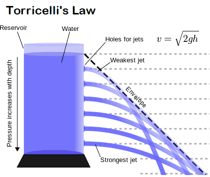 I grew up loving the "The Professor" segments on a kids show from the 70's called "The Hilarious House of Frightenstein". It was hosted by Dr. Julius Sumner Miller. In one episode, he talks about Torricelli's law with a three holed can. The holes are placed at 1/4, 1/2 and 3/4 the distance from the top of the can. Julius suggests that the top and bottom holes will cover the same distance from the can when draining. He then suggests that the middle hole will be the strongest and go the furthest from the can. He states the distance from the can, from the middle hole, will be equal the the water height in the can.