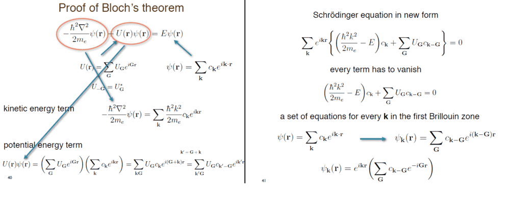 our solid state professor gave us a series of power point slides that contains the derivation of Bloch theorem , but some points is not clear to me , and when i asked him his answer was also not clear :