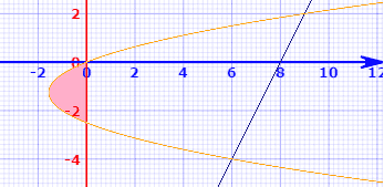 The equations that form the boundaries are y = 2x - 16 and ##x = y^2 + (5/2)y##.