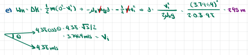 However, I don't understand why they only used a component of the initial velocity as it comes off the incline. I used 4.38 m/s because I thought that once the block reaches the horizontal surface, the vertical and horizontal components of the velocity from the incline would combine to give 4.38 m/s. Do you please know why or whether the solutions are wrong?