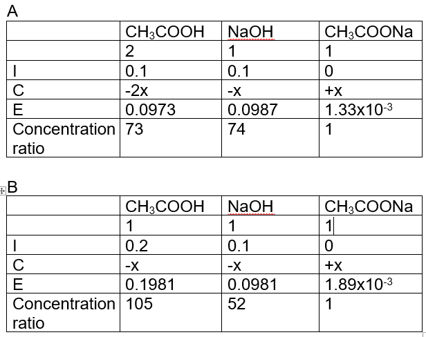 - One participant suggests that solution A is a buffer because the reactants are in a 1:1 ratio, while solution B has a 2:1 ratio, which they argue does not meet the stoichiometric requirements for a buffer.