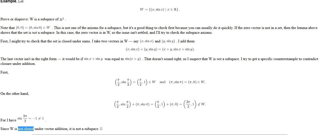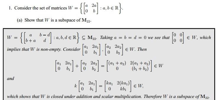 I mean, all they've done is added them up and multiplied by scalar k. But can't you do that with any general set, and then turn around and say it is closed under scalar multiplication and addition?
