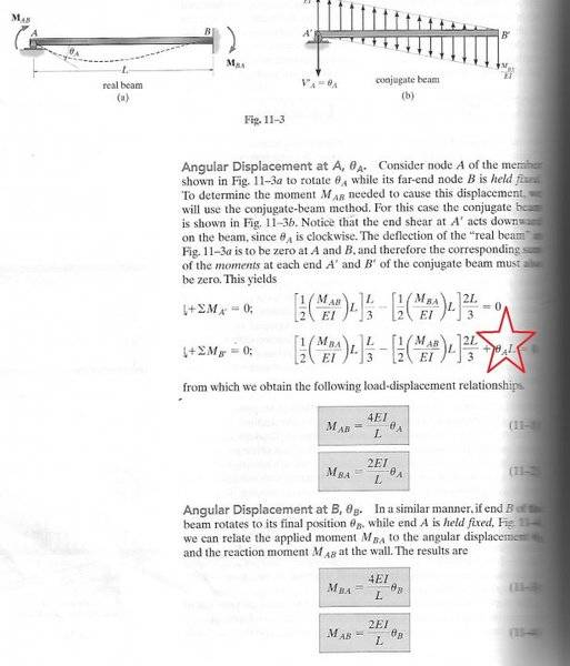 why theta_A multiply by L , we will get moment ? what is theta_A actually ? I'm confusedsakonpure6 said:The author takes moment using the conjugate beam, and at point A there is a shear force acting downward which is equal to the rotation of A in the real beam.