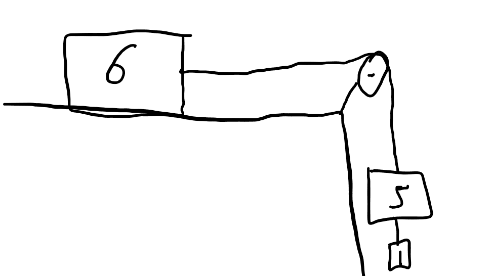 The discussion revolves around a force pulley system involving a 1 kg mass and its interaction with other masses. Participants are exploring the forces acting on the 1 kg mass, particularly questioning the calculation of the downward force being 60N, which seems counterintuitive to some. The context includes concepts of tension, weight, and net forces in a dynamic system.