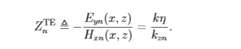 While analyzing an EM field polarized in the y-direction, the modal impedance of the TEn mode comes out to be: