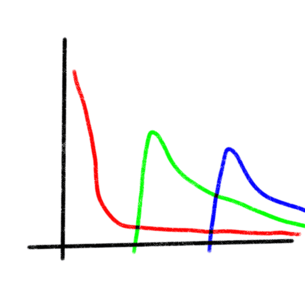 So if you take a radial section from the center of your photo, you're looking at the sum of these three graphs: