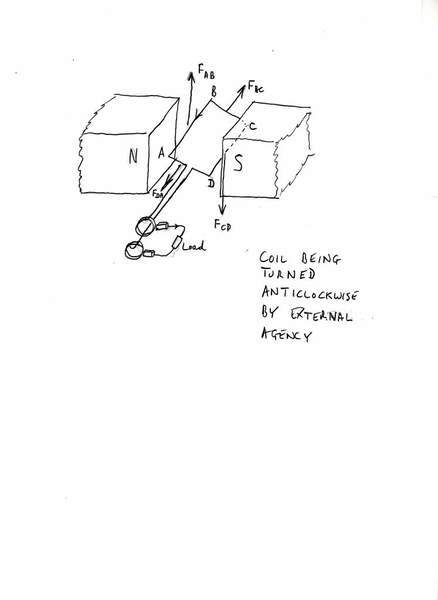 Lastly, when I turn the handler of the coil in the ac generator, eg with 10N. Will the force solely act at one side of three armature or will the force be divided into 2 then they will act at the 2 ends and one is upwards the other downwards?