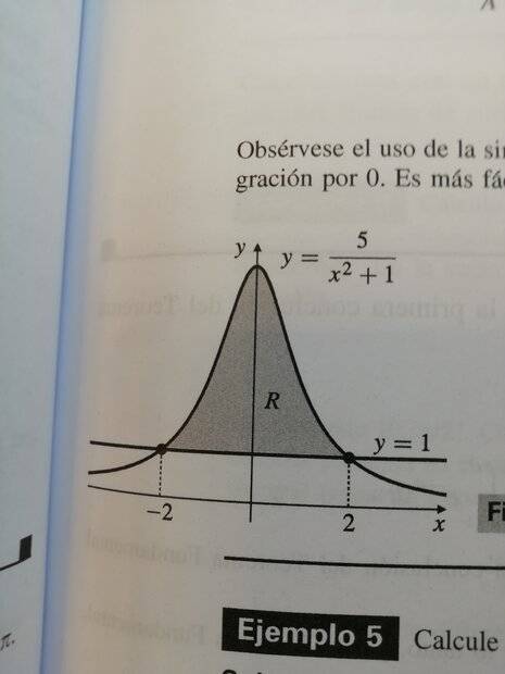 Solution The region ##R## is shaded in Figure 5.24. To find the intersections of ##y=1## and ##y=5/(x^2+1)##, we must solve these equations simultaneously: