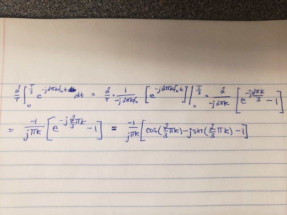 • It is proposed that multiplying by an exponential term, specifically $$e^{\frac{-j\pi k}{3}}$$, could be beneficial, suggesting a strategy to simplify or manipulate the expression further.