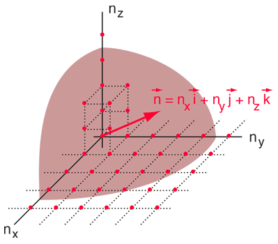 \varepsilon\left(n_{x}, n_{y}, n_{z}\right)=\frac{h^{2}}{8 m L^{2}}\left(n_{x}^{2}+n_{y}^{2}+n_{z}^{2}\right) ; \quad n_{x}, n_{y}, n_{z}=1,2,3, \ldots,