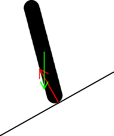 - Participants explore the significance of the rod's orientation, debating whether it is vertical or perpendicular to the slope and how this affects stability.