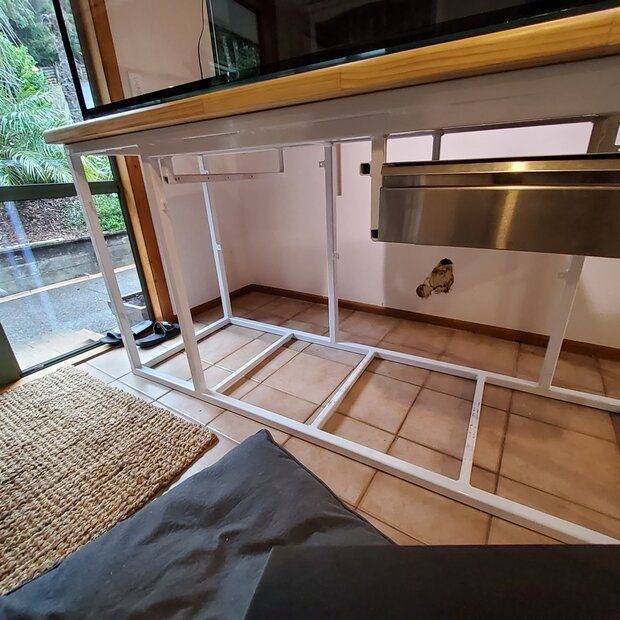 - Built the stand for a smaller tank... but decided to use a larger tank...