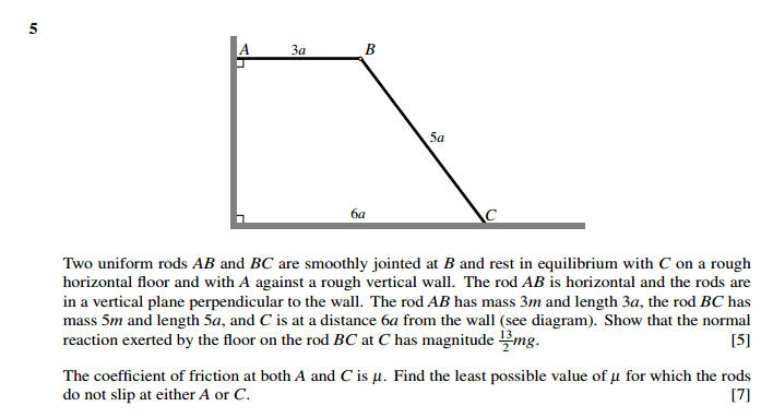 - Another participant asserts that half of the weight of rod AB is supported by hinge B, suggesting this contributes to the answer of ##13\over2##.