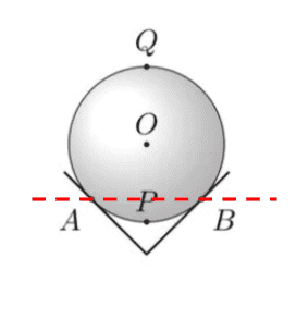 First, there seems to be some confusion regarding point Q in the diagram. The text defines it as the "highest point" of the sphere. The diagram implies it is not that; rather, it is the point furthest from the junction of the plates. Indeed, the highest point is not the fastest moving, whereas the point furthest from the junction of the plates is.