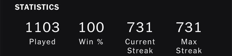 You've played 1103, you have 100% win rate, and 731 streak! Why not 1103 streak?