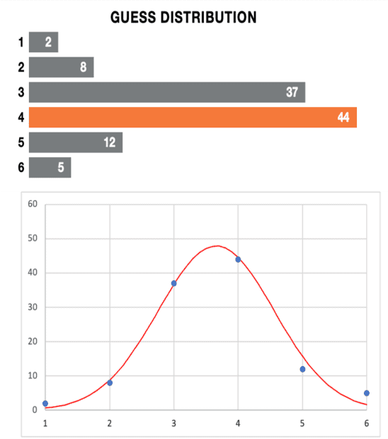 I go to https://www.nytimes.com/games/wordle/index.html for the daily puzzle. It provides the histogram after the solution is completed. I eyeballed the "fit" on Excel using NORM.DIST.fresh_42 said:Which website or program did you use?