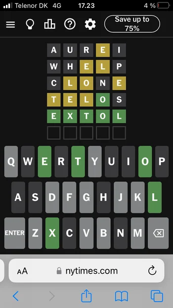 🟨🟩⬛🟨⬛ TASER 4 left. 3 of which leave only 1 solution.