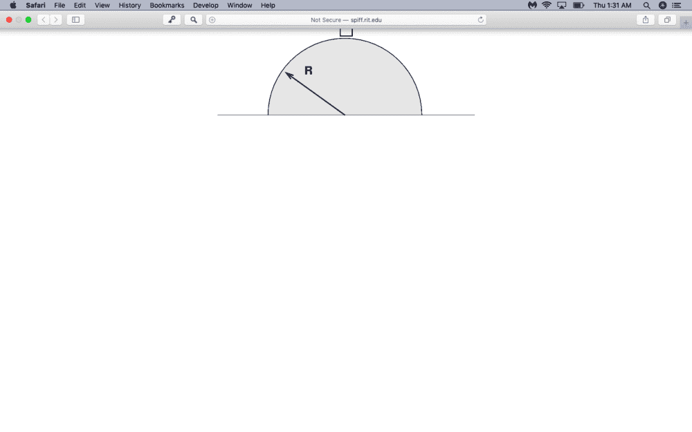 - A perfect hemisphere of frictionless ice has radius R=7 meters. Sitting on the top of the ice, motionless, is a box of mass m=7 kg.