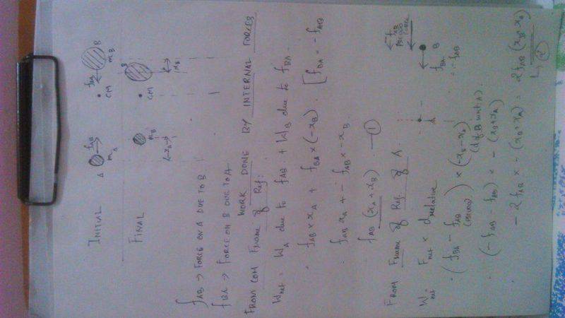 Computing the work done by internal forces on a system of particles, under two different frame of references, i obtain two different answers.I have uploaded the image of the derivation.