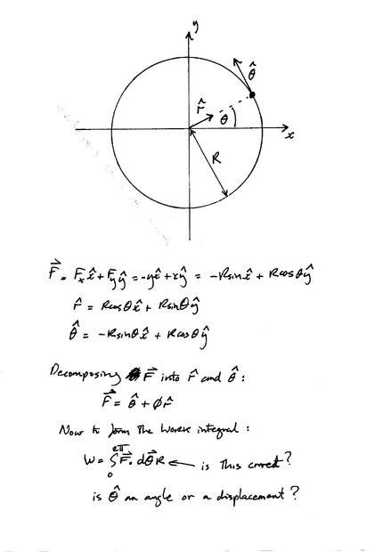 $$W_x = \int_a^b -\sqrt {R^2 - x^2} \, dx$$$$W_y = \int_a^b \sqrt {R^2 - y^2} \, dy$$