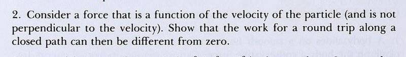 The discussion revolves around a physics problem concerning work done when the force is a function of velocity, specifically in the context of a round trip along a closed path. Participants explore how to demonstrate that the work can be different from zero in such scenarios.