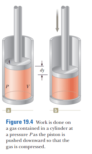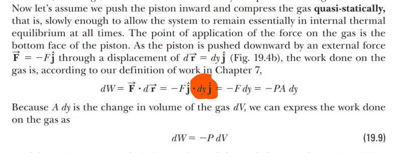 - Participants are questioning why the displacement of the piston, which is downward, is not considered positive in the context of work done. There are discussions about the notation and conventions used in the equations, particularly regarding the signs of force and displacement.