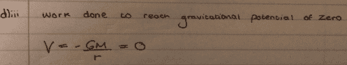- Calculate the work done on the mass to a point where the gravitational potential is zero