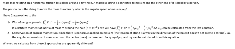 Summary:: Would energy method give us a different answer from conservation of angular momentum?