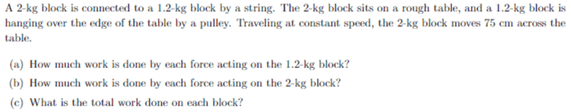 For A the 1.2 kg block is being pulled by gravity hence work is done downwards which will make work positive since it's going with the same direction as the force.