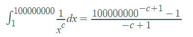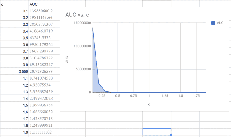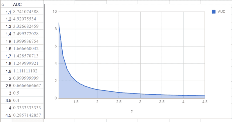 AUC = (100,000,000^(-c+1) - 1)/(-c+1)