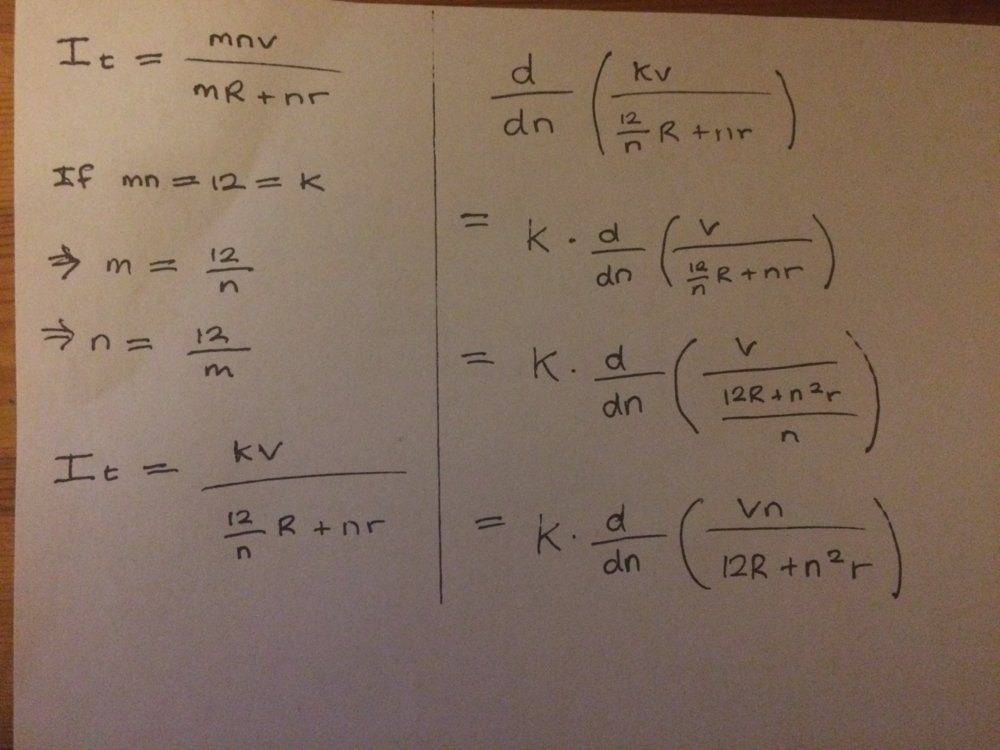 The discussion revolves around calculating current and voltage in a circuit involving multiple cells connected in various configurations. The original poster is specifically focused on understanding the implications of connecting 12 cells in series versus parallel arrangements, and how these configurations affect the overall current and voltage outputs.