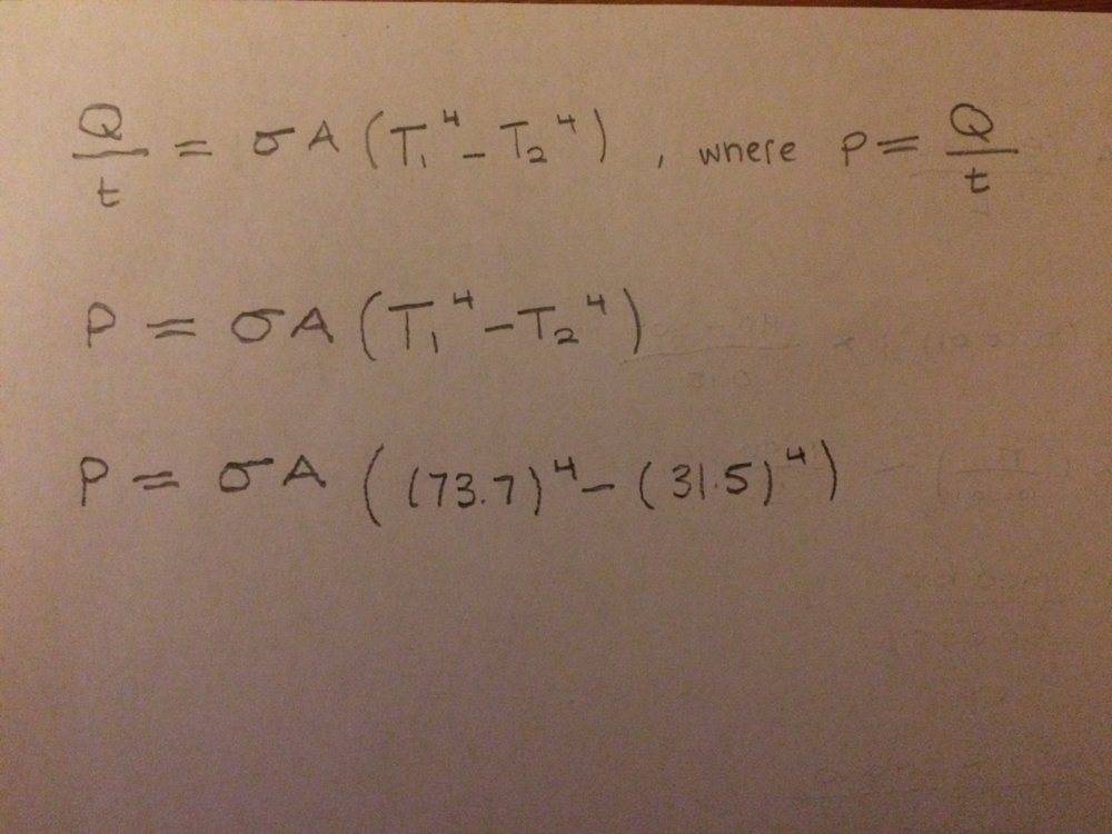This was all I was able to think of but I don't know how to proceed further from this?Chestermiller said:Yes, but don’t forget to include the amount radiated back from the room, to get the net rate of heat transfer.