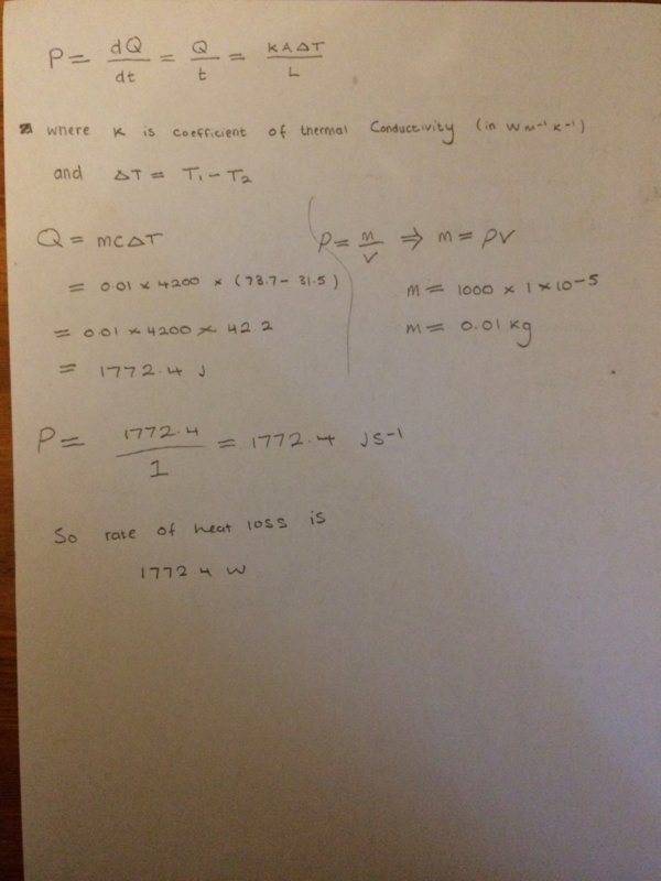 The discussion is active, with participants providing guidance on the need to consider various forms of heat transfer and the importance of significant figures in the final answer. Some participants express uncertainty about the correct approach and the implications of steady-state conditions.
