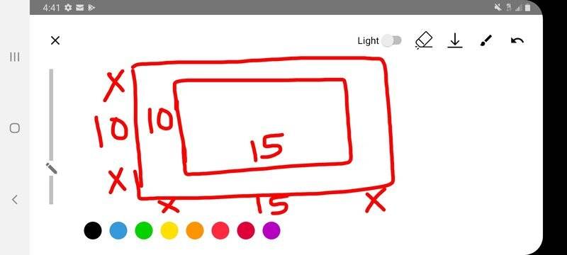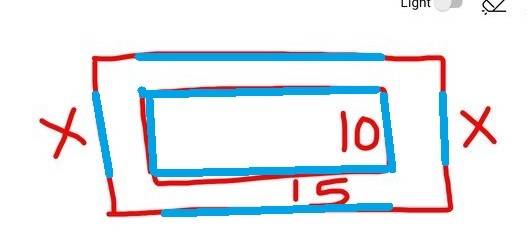 The length and width of a rectangular garden are 15 meters and 10 meters, respectively. A walkway of width x surrounds the garden.