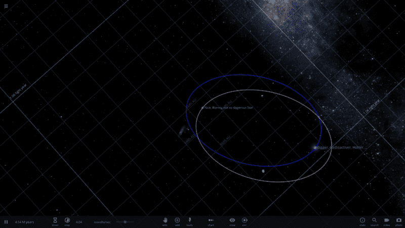 What I want to know is which of the following is more realistic to accomplish what I expect: a Solar storm that lasts 500 years or a binary star system in which a sun like star (which our planet orbits) has an enormous orbit around a much bigger, hotter and more radiation emitting star,to which it only passes close to notice it's effects every hundred thousand years or so. I left below an image of something that kind of resembles what I mean with this second scenario.
