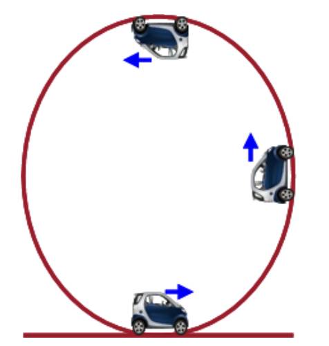 - Whats’s the minimum speed so that car stays in contact with the top of a vertical loop? R = 9.7 m, mass of car = 257 kg