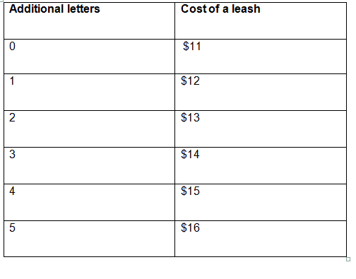 c.What is the cost of a leash with no additional letters? Explain how you know.