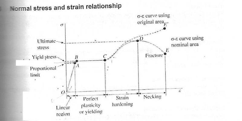 - It is noted that in the elastic region, deformation is proportional to the applied force according to Hooke's Law, but this relationship changes once the yield point is reached.