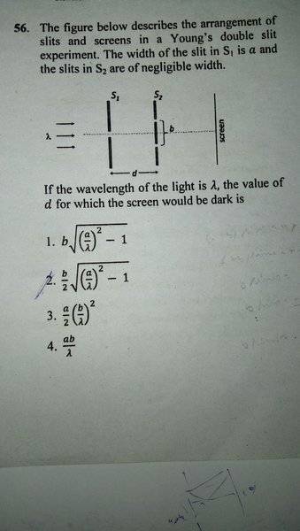Putting ab/(2sqrt(b^2/4+d^2))=λ/2 for first order minima