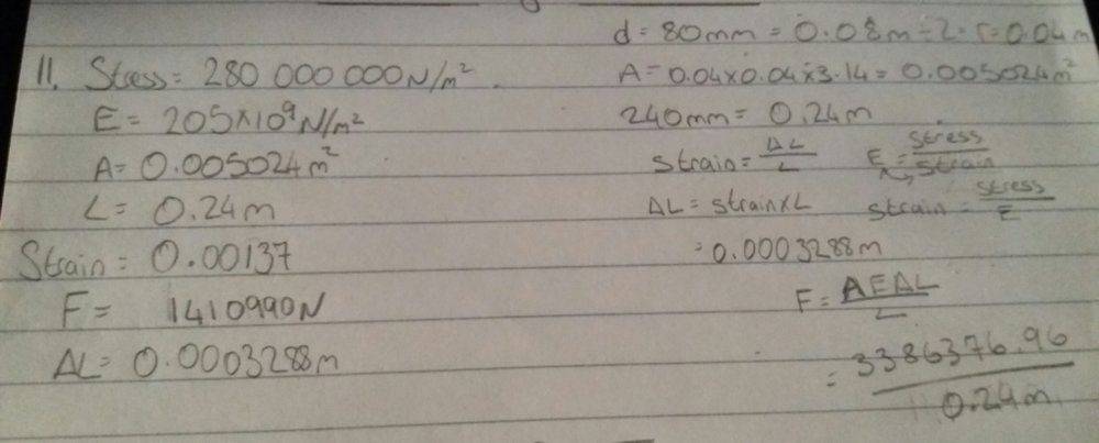 - Participants are questioning their arithmetic and the impact of rounding errors on their results. There are discussions about the relationship between stress, area, and force, as well as the use of formulas involving Young's modulus.